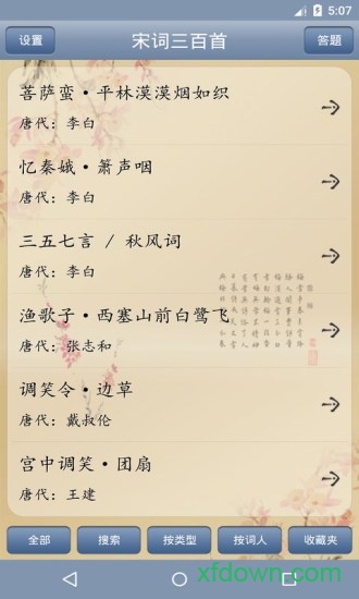 宋词三百首是一款专注于宋词欣赏与学习的优质应用软件,它汇集了中华文化宝库中最璀璨的宋词精华。这款软件不仅收录了完整的三百首经典宋词作品,还特别设计了智能搜索系统,让用户能够快速精准地找到心仪的诗词作品。经过持续的技术优化和版本迭代,目前软件已完美适配最新的安卓操作系统,确保所有用户都能获得流畅稳定的使用体验。