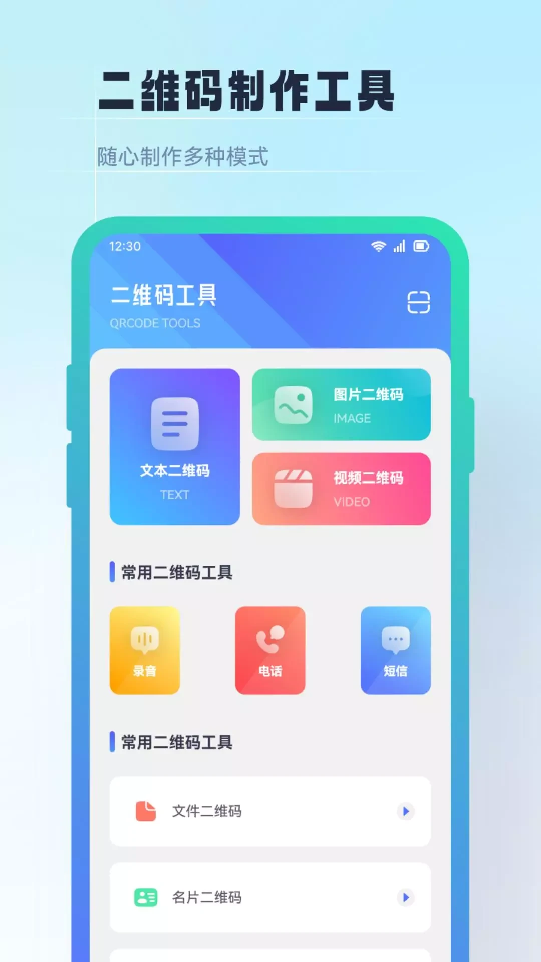 提供专业的二维码生成和美化,可以把文本、名片、网址、图片、录音文件、电话号码、电子邮件、短信等信息一键制作成二维码。扫码即可查看,二维码长期有效。【应用亮点】文本二维码:将您想说的话,直接转换成二维码,让信息传递更安全便利。名片二维码:创建社交名片二维码,扫一扫交换名片,社交更加便捷。网址二维码:将网址转换成二维码,扫一扫直接打开,简单快捷。图片二维码:从相册中选择图片,可一键转换成二维码,并分享给好友。一键扫码:快捷扫描二维码,自动保存扫码记录。快来下载吧,制作专属您的个性二维码!