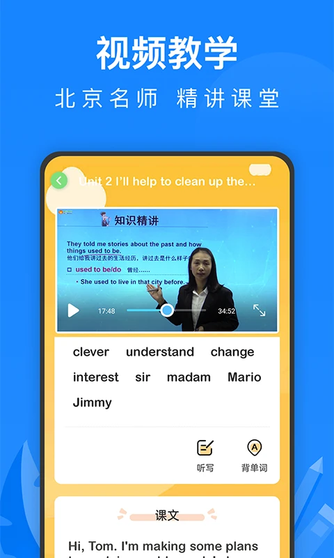 初中高中数学,语文,英语,物理,化学等名师课堂教学视频大全,考试升学提分利器。同步教材,课后每日一练。知识点名师讲解,课后辅导更加高效。【课程全面】中学课程包含了初中高中全科各章节内容的知识点总结。“辅导资料”、“作文素材”、“同步练习题”。【资深名师】资深授课老师,独特的教学方法,帮助学生摆脱升学考试的烦恼。【同步课堂】“视频同步课程学习,同步课堂线上支持人教,北师大版,苏教版等其他版本。【年级讲解】年级课程目录随意切换,讲解重点突出。