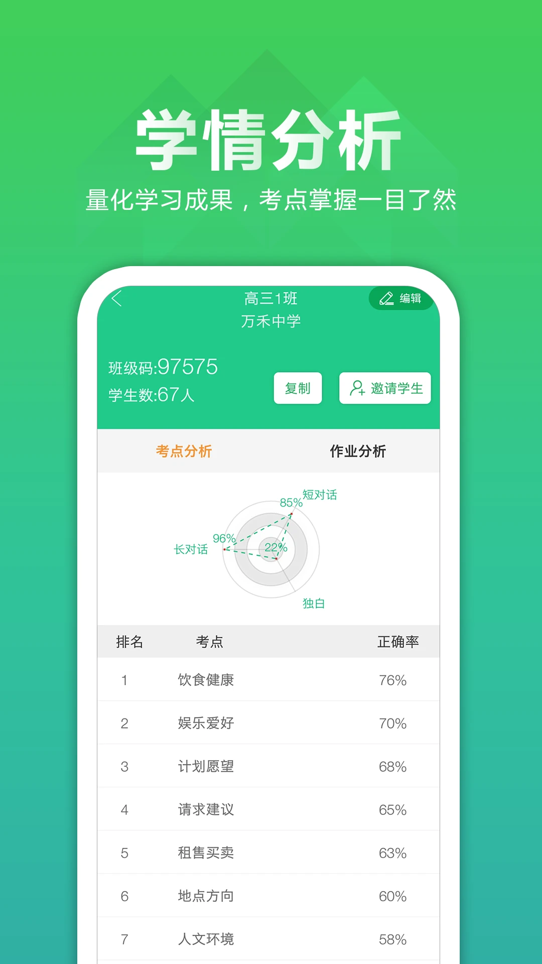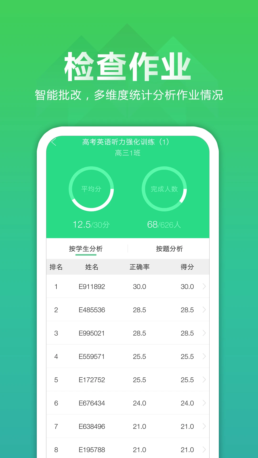智能作业系统:可一键分发听力作业,自动统计提交率和完成进度