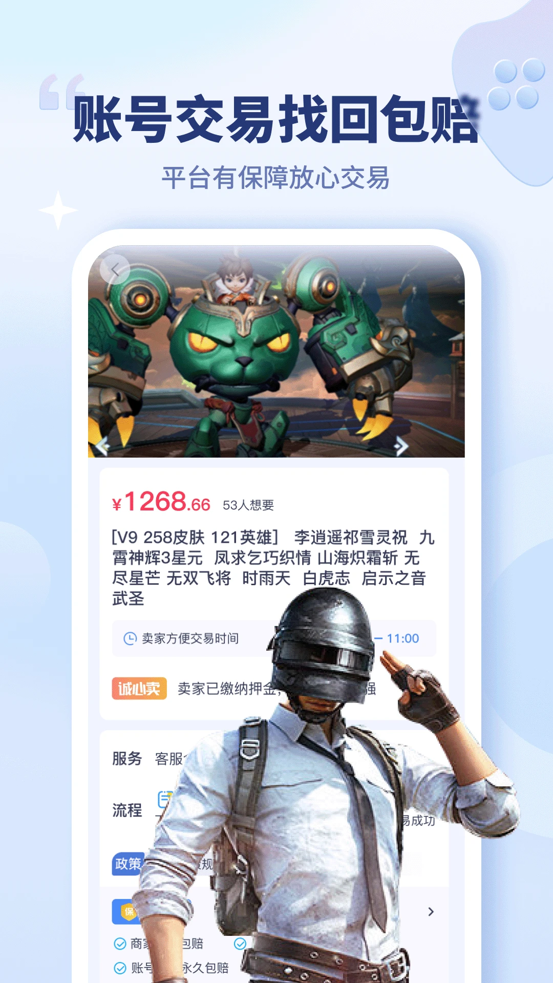 游戏三方交易平台买号宝,涵盖手游,端游,steam等全品类游戏交易APP,为热爱游戏的你提供,帐号交易,帐号回收等一系列游戏交易服务;同时提供角色转移,找回包赔,实人认证等多重安全保障;游戏交易就上买号宝。产品特色: