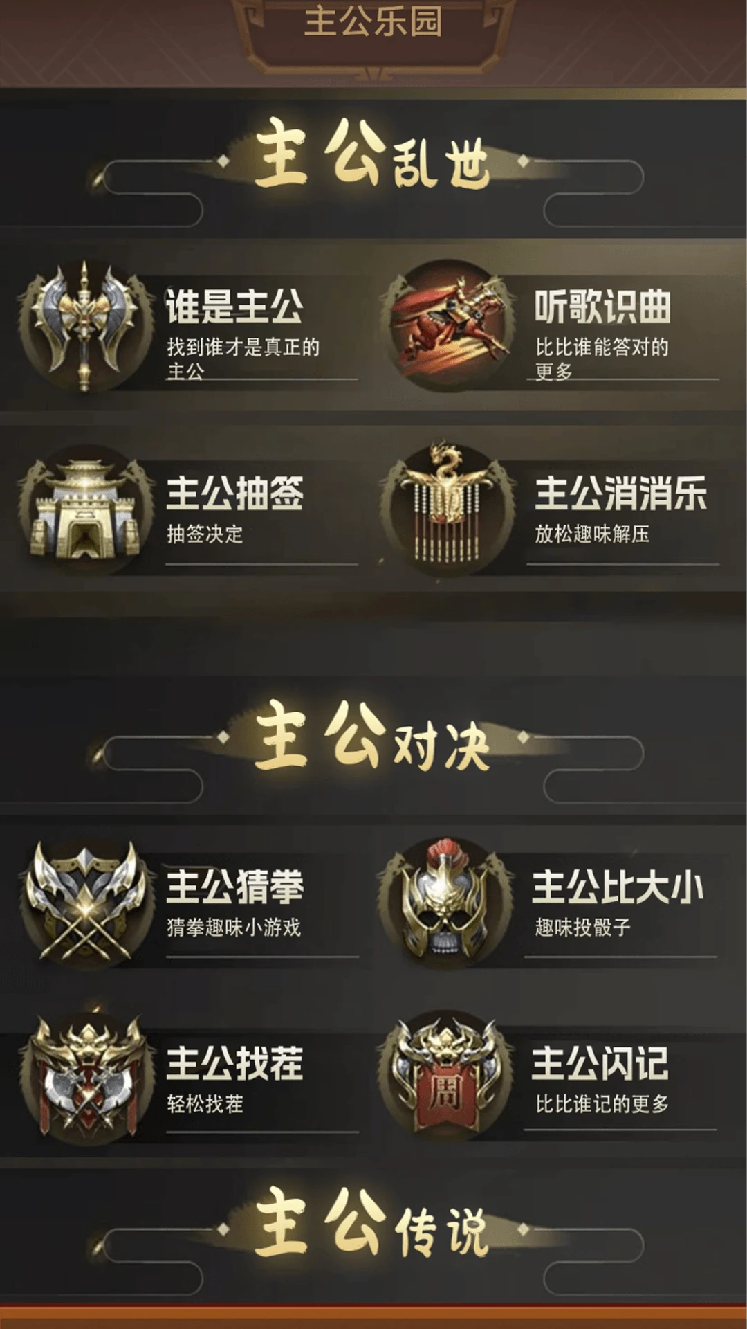 创新的游戏模式:主公轮盘大冒险等玩法新颖,给玩家带来新鲜体验。