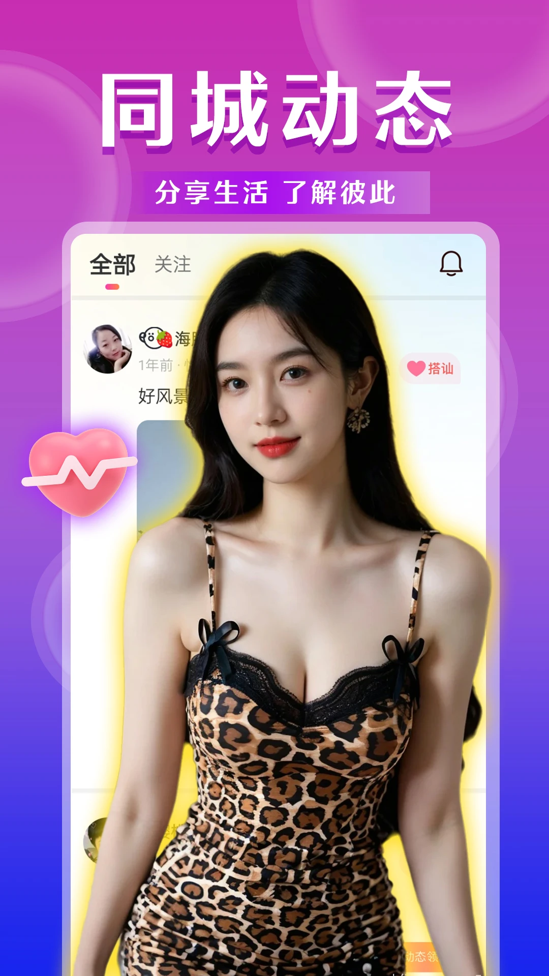 这是一款陌生人,聊天、交友、约会、成年人交友的社交平台,为陌生单生男女量身定制的聊天蜜约社区软件,让陌生人遇见交友不再是难题!全天候在线蜜语爱聊,分享互动,探索附近单身高颜值异性,聊聊人生,聆听默声。功能特色【同城交友】同城附近陌生人,探寻海量单身优质异性,线上立刻就聊,成年人交友,快速不孤单,来场不一样的同城约会!【陌聊匹配】语音聊天,一键匹配,为无聊的你定制,快速匹配与你相投的找个伴陪你聊天,打造零距离陌生人视频聊天语音互动,让你的聊天充满别样情趣,找到与你心灵契合的聊天找个伴!【海量用户】甜美高颜值可爰妹子、温柔知性小姐姐,善解人意大姑娘......海量真实单身妹子,开始美丽邂逅之旅;【兴趣互动】兴趣聊天、情感分享、生活写实、视频互动,探索对方兴趣爱好和生活动态,喜欢就与TA互动,文字表情语音,想怎么聊就怎么聊,帮你在线找到灵魂聊友。【真人认证】人工+系统双重审核,真人交友,同城附近人资料在线查看,让你大胆交友,放心畅聊!【语音聊天】不看长相只听声音,语音聊天为爱转身。通过声音你可以判断对方是否有趣,幽默或者涵养,用声音做跟你陪聊天的好伙伴。