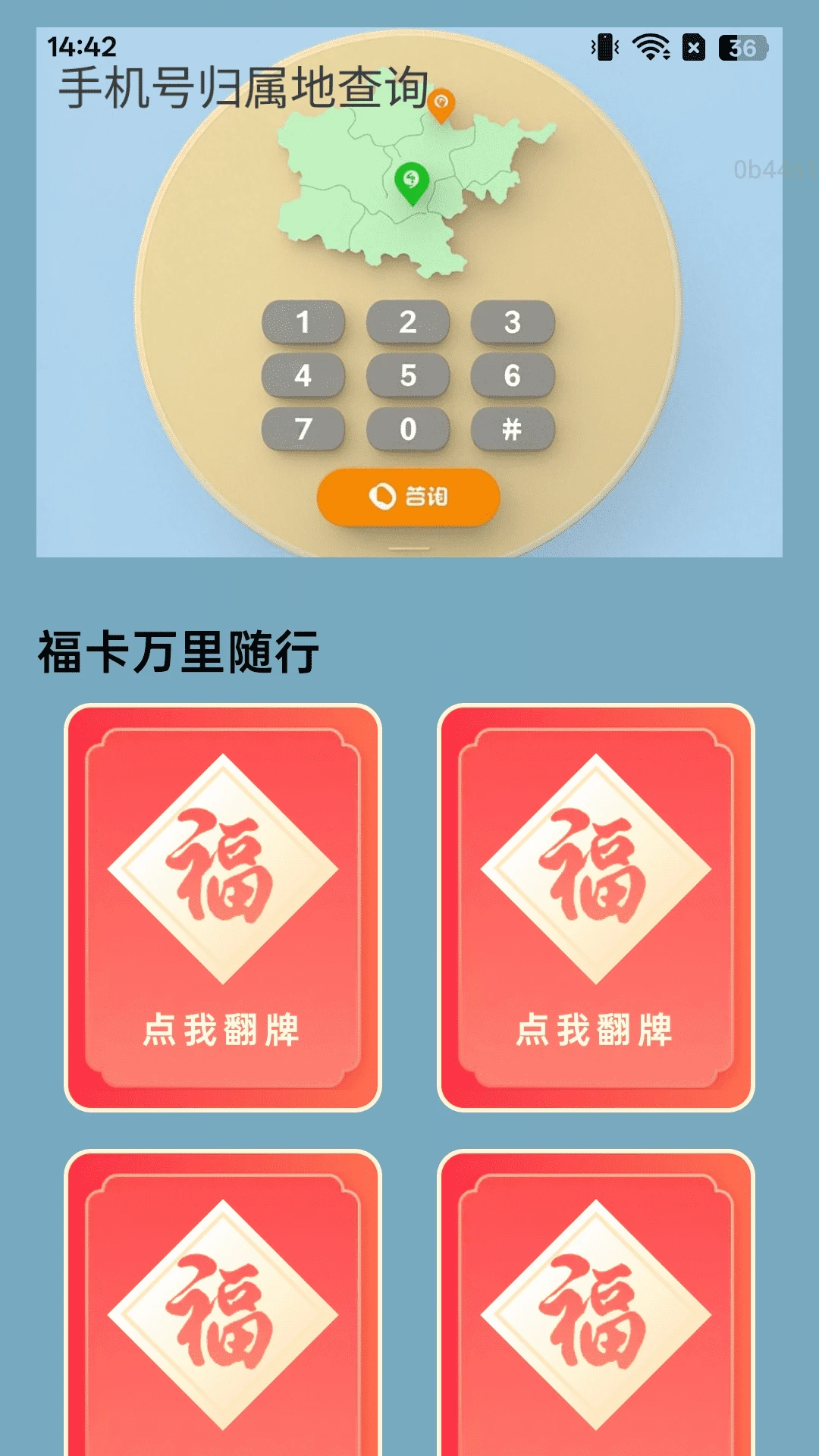 “福行万里路”是一款融合旅行、生活服务与趣味互动的应用。可探索阜阳美食等特色内容,了解国内出行地;记录卡路里、步数等运动数据,感知空气湿度、温度等环境信息;支持手机号归属地查询,还有“福卡万里随行”翻牌玩法,更能参与历史古迹“福”文化投票,点亮“福气”足迹,串联旅行与生活,为用户带来丰富体验。