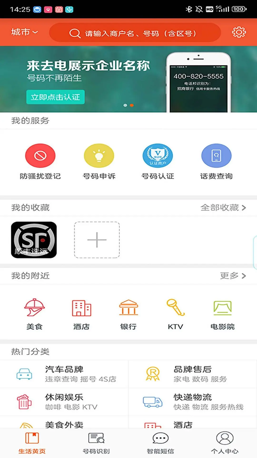 分类清晰明确,常用电话如快递、外卖等一键直达