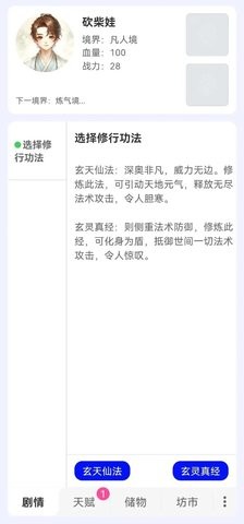 游戏的核心玩法是通过文字引导玩家做出关键选择,这些选择将直接影响剧情发展和主角的命运走向,为游戏增添了丰富的可玩性和不确定性。游戏还设有玩家交流系统,让修仙者们可以分享心得、交流经验,共同探讨修仙之道。此外,游戏中提供了大量各具特色的功法供玩家选择,找到适合自己的修炼方法,将大大提升修炼效率。