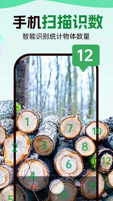 数钢管拍照计数宝是一款集扫描、转换、文档编辑处理的全能扫描工具。内置了多种实用功能如文件扫描、扫描计数、文字识别以及翻译等。是一款不可多得的办公助手软件。主要功能介绍:文件扫描将纸质文档快速转为电子文件,智能去除杂乱背景,生成高清文件。扫描计数智能计算扫描的物品数量,各类建筑钢管、轮扣、快拆架等物品无需手动计算。万能识别支持识别动物、植物、水果、蔬菜等多种物品,并查询相关信息,生成文档内容。翻译工具支持扫描翻译、拍照翻译。
