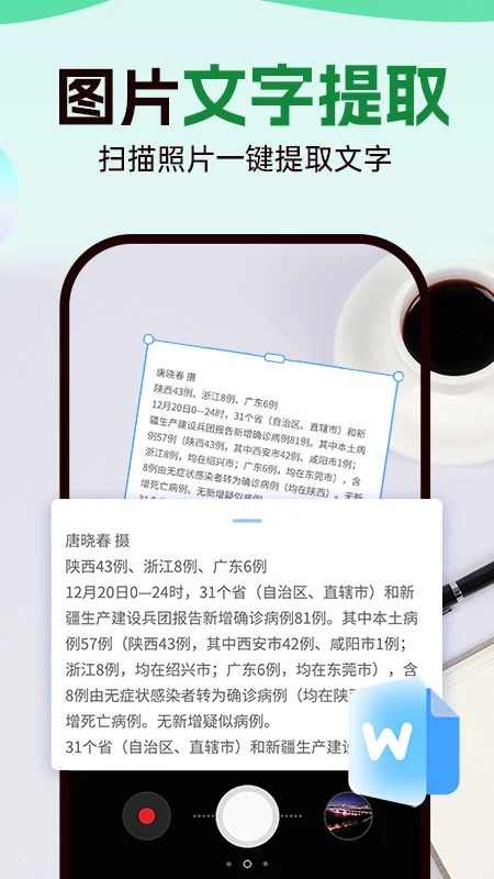 文件扫描功能可将纸质文档快速转换为高清电子文件,支持智能去除背景杂色。