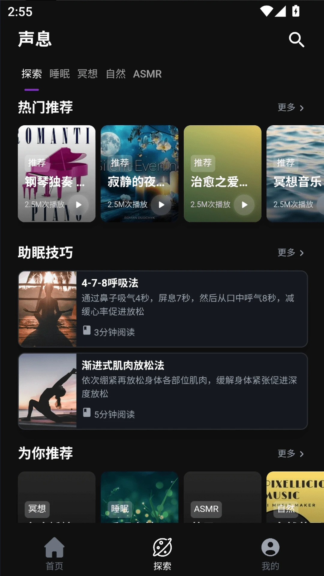 声息的音频内容覆盖广泛,从自然声音到专业睡眠音频,满足多样化需求。