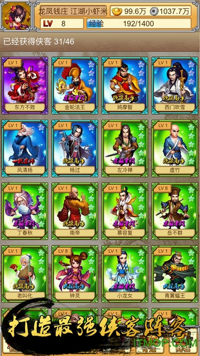 《江湖侠客行》是一款深度还原武侠文化的精品手游。游戏不仅完美呈现了金庸古龙笔下的经典武侠世界,更创新性地加入了现代卡牌收集和角色培养元素。玩家可以自由搭配上百种绝世武功,组建专属侠客阵容,体验策略性十足的布阵对战。游戏贴心地设计了新手引导系统和每日福利活动,让每位玩家都能轻松上手。同时,丰富的社交玩法和帮派系统,让您能与志同道合的侠友一起闯荡江湖,感受最纯粹的武侠情怀。
