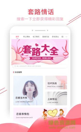 套路大全是一款专为社交互动设计的整人对话软件,它不仅能帮助用户在尴尬场景中巧妙化解危机,还能通过丰富的情话套路提升沟通魅力。软件内置海量经典对话模板,涵盖各种社交场景,用户只需简单搜索即可快速获取所需内容。无论是初次约会、朋友聚会还是职场社交,都能找到合适的应对策略。其独特的实战教学模式让学习过程更加生动有趣,用户可以在模拟对话中快速掌握技巧。想要提升社交能力的玩家,现在就可以到绿色资源网下载体验这款实用又有趣的软件!