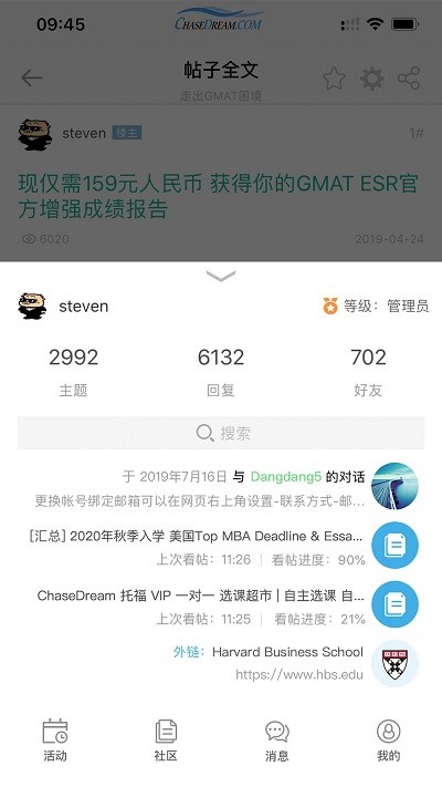 作为国内首屈一指的商学院申请交流社区,ChaseDream论坛深耕商科教育领域多年,拥有超过50万活跃用户。平台不仅覆盖MBA申请全流程指导,还延伸至商科硕士/博士申请、语言考试备考等细分领域。独特的"校友导师"制度让申请者能直接获得在读学生和毕业校友的一手经验,而定期举办的线上分享会和案例解析活动,则为用户提供了沉浸式的学习体验。论坛采用严格的实名认证体系,确保交流环境的专业性和安全性。
