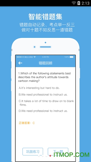 基于周报笔试习题,配合专用答题卡,实现对测试题期数客观题拍照后自动评分功能。针对主观题型,用户将答案填写在专用答题卡并拍照上传后,老师可通过后台进行批改,批改后评分可上传到app。智能错题集功能通过拍照评分,用户可实时查看周报练习测试结果,同时系统将根据考点对错题进行智能归档和同类考题智能推送,帮助用户达到举一反三、巩固强化目的。这项功能大大提高了学习效率,让学生能够更专注于薄弱环节的突破。