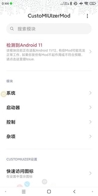 当前开发重点在于系统适配而非功能扩展,主要目标是确保在更高版本的MIUI和Android系统上的兼容性。虽然未来有计划适配Android12和MIUI13,但目前开发资源主要集中在完善Android11和MIUI12.5的支持上。如果用户发现某些mod在Android11/12或MIUI12.5/13上无法正常工作,欢迎通过issue系统反馈问题。开发团队会优先处理Android11和MIUI12.5的适配问题,之后再逐步解决新系统的兼容性。