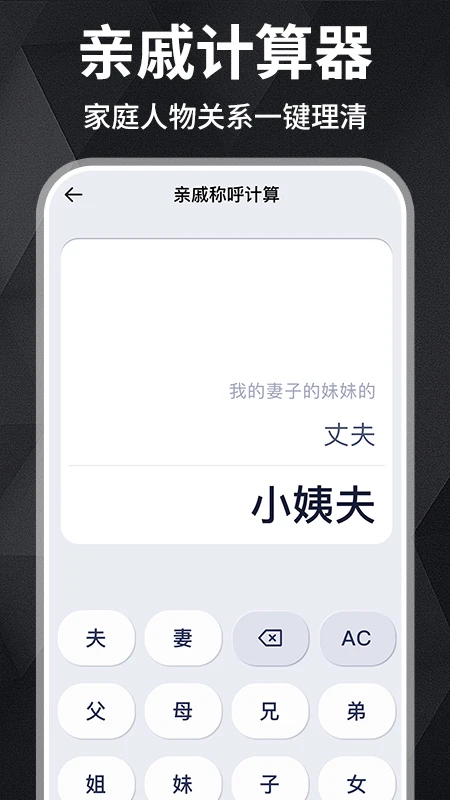 亲戚计算器智能识别亲属关系,输入简单信息即可快速得到正确称呼。