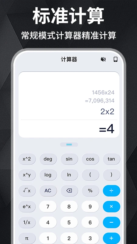 基础计算器功能全面,支持加减乘除等基本运算,按键震动反馈提升操作体验。