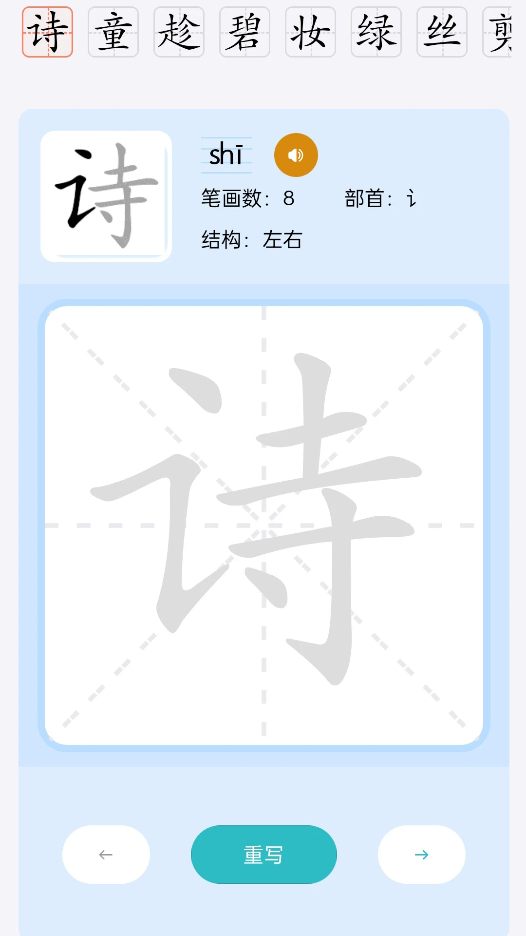 笔顺练习:动态展示汉字笔顺,让学生正确书写每一个汉字。