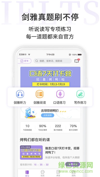 创新的语音评测系统可即时反馈发音问题,内置海量高分回答范例。用户可参与话题讨论,与全国考生交流备考心得,共同进步。