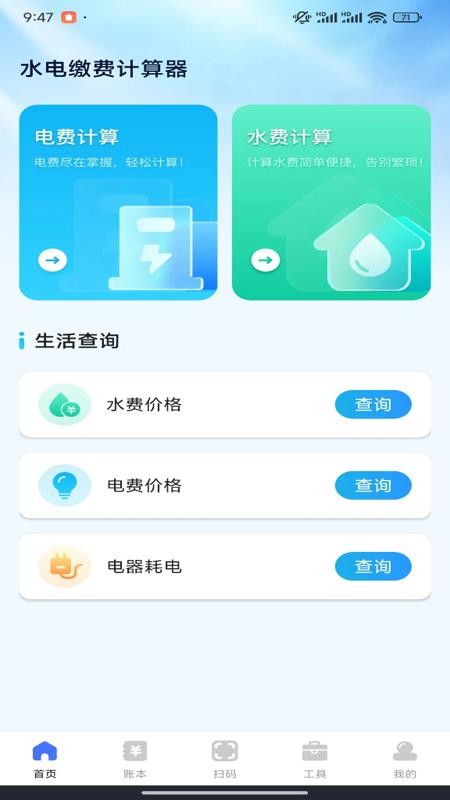 水电缴费计算宝app将复杂的水电费计算变得简单直观,帮助用户轻松掌握家庭能源消耗情况。通过精准的数据分析和实用的记账功能,让家庭财务管理更加科学高效。软件界面友好,操作便捷,是提升生活品质的智能助手。