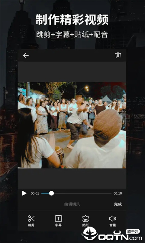 【自由创作】视频、照片、音乐、字幕、贴纸随意搭配,自由编辑!丰富的素材库和灵活的编辑方式,让创意不受限制。