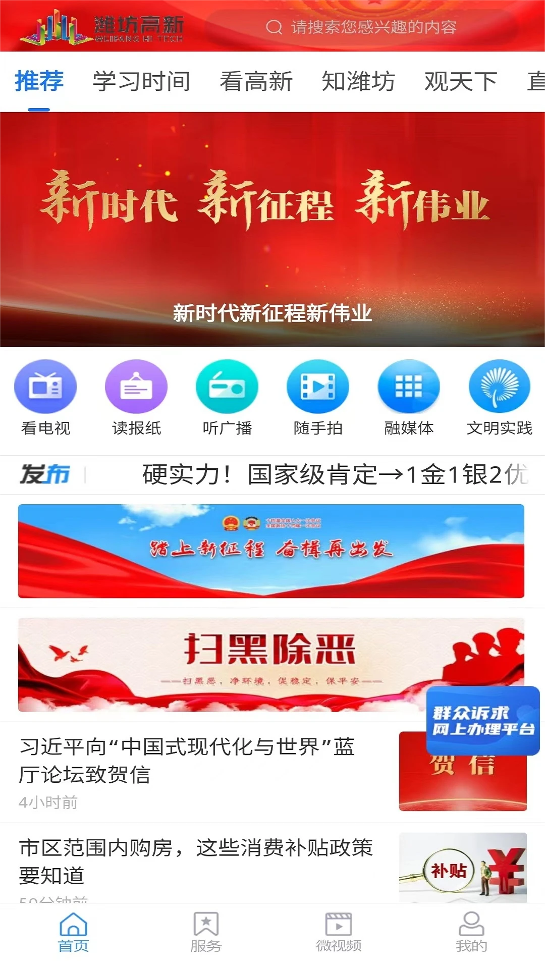 实时新闻资讯推送:聚合潍坊日报、高新电视台等权威媒体每日更新内容