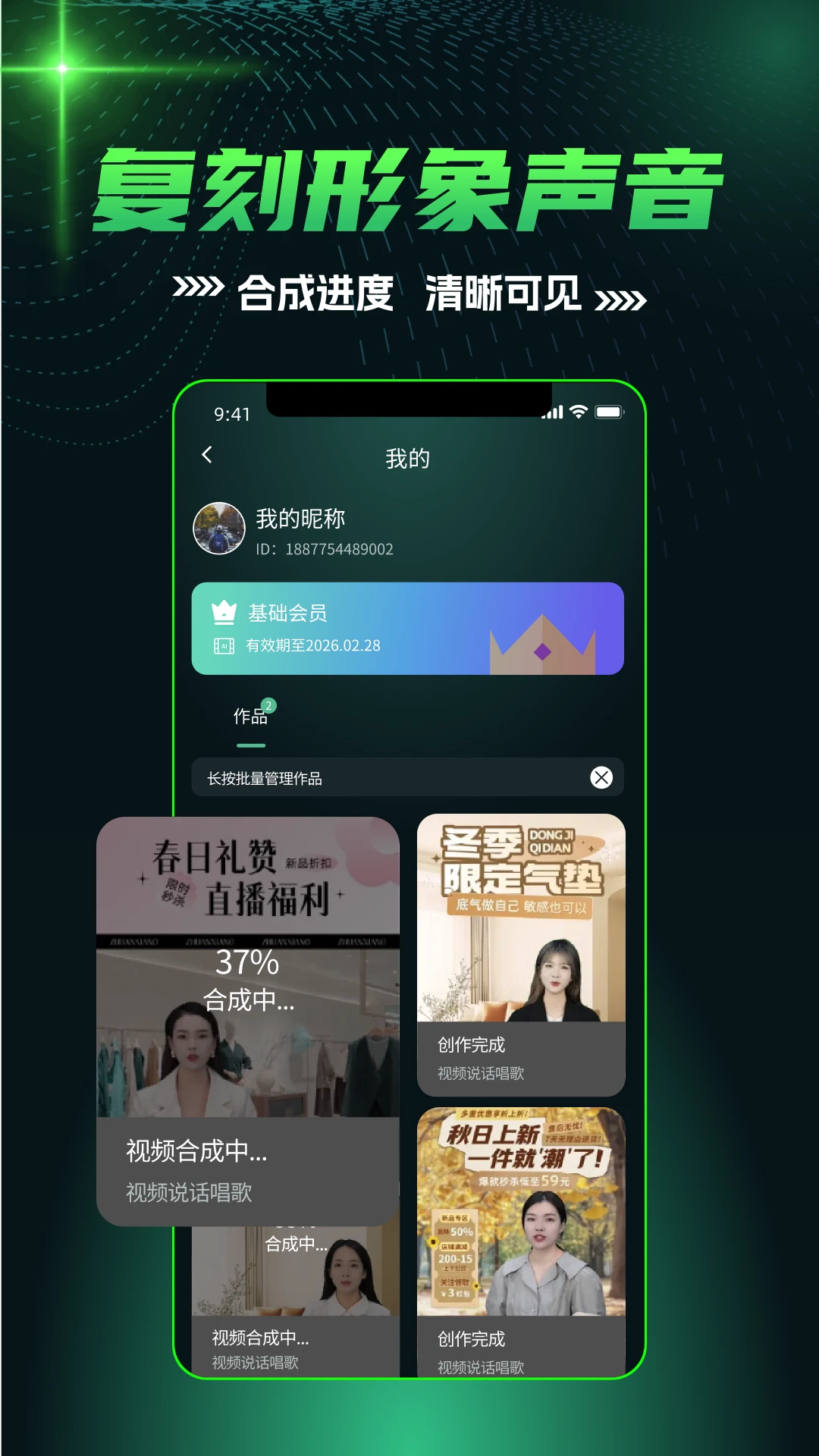 AI口播——智能对口型视频创作神器一键生成逼真口型,让AI替你"说话"!核心功能AI智能对口型:上传音频或输入文字,AI自动生成自然流畅的唇形同步视频,告别繁琐剪辑。多语言/方言支持:支持中文、英语及多种方言,满足全球化内容创作需求。高清导出:1080P/4K画质输出,适配短视频、直播、广告等多种场景。适用人群•短视频博主:快速制作口播视频,日更无压力。•教育培训:用虚拟讲师讲解知识点,趣味性满分。•电商直播:生成商品介绍视频,24小时带货。•企业宣传:低成本打造专业AI发言人。为什么选择AI口播?0门槛操作:无需演技或剪辑技巧,3步生成视频。隐私安全:本地化AI处理,保护用户音视频数据。持续进化:每周更新语音库和虚拟形象,常用常新。