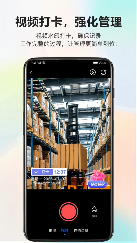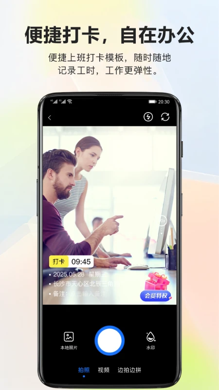 内置多种专业水印模板,适用于考勤打卡、工作记录、品牌宣传等场景。