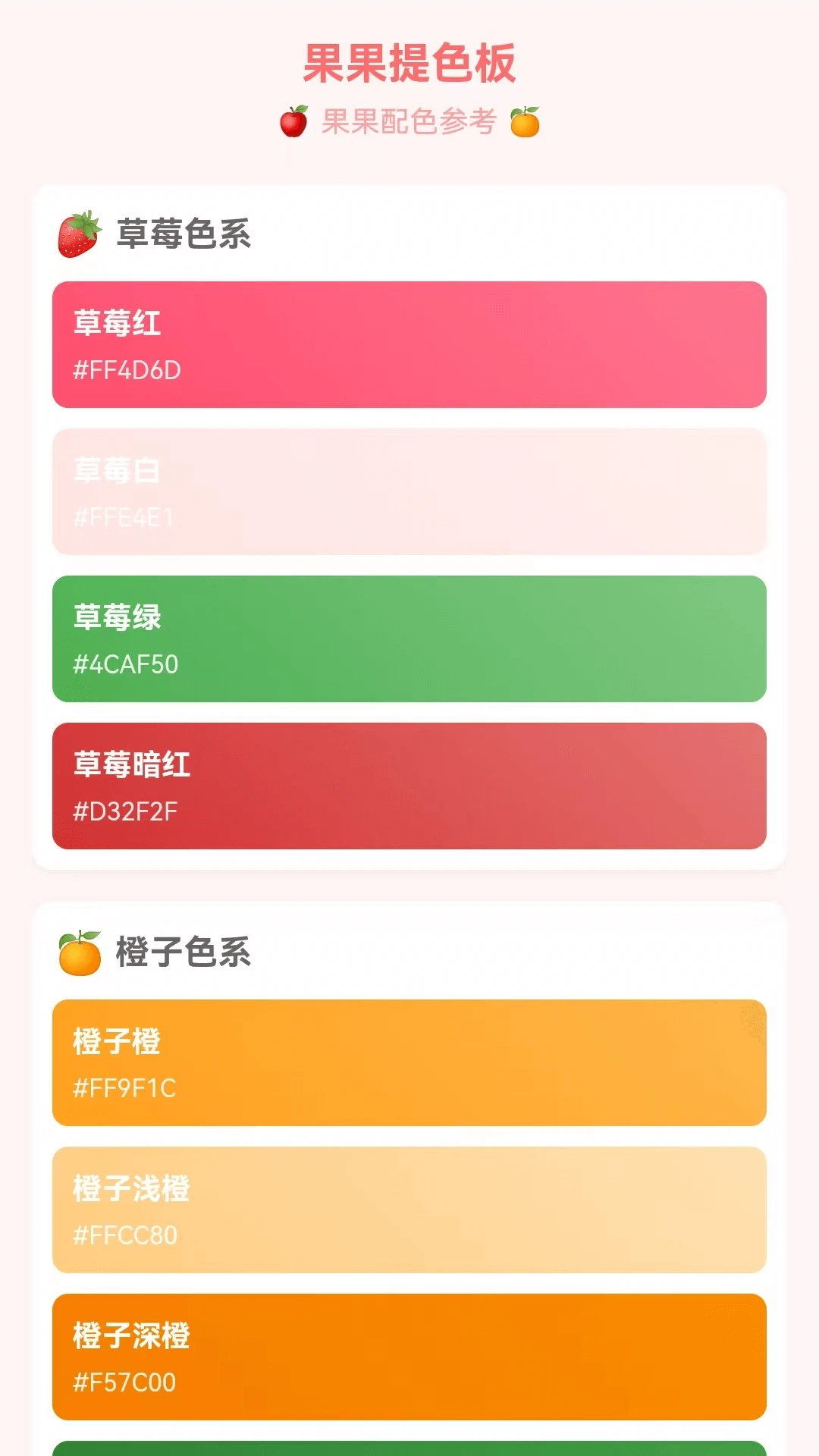 色彩库持续更新,不断加入新的水果配色主题。