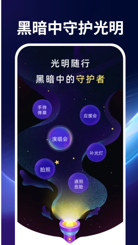 手电筒:轻松一键开启,瞬间照亮黑暗。适配多种机型,让您的手机秒变手电筒。后置手电筒-常用的手电筒,可以调节亮度,适合各种不同场景。前置手电筒-适合弱光条件实用,拍照补光等。