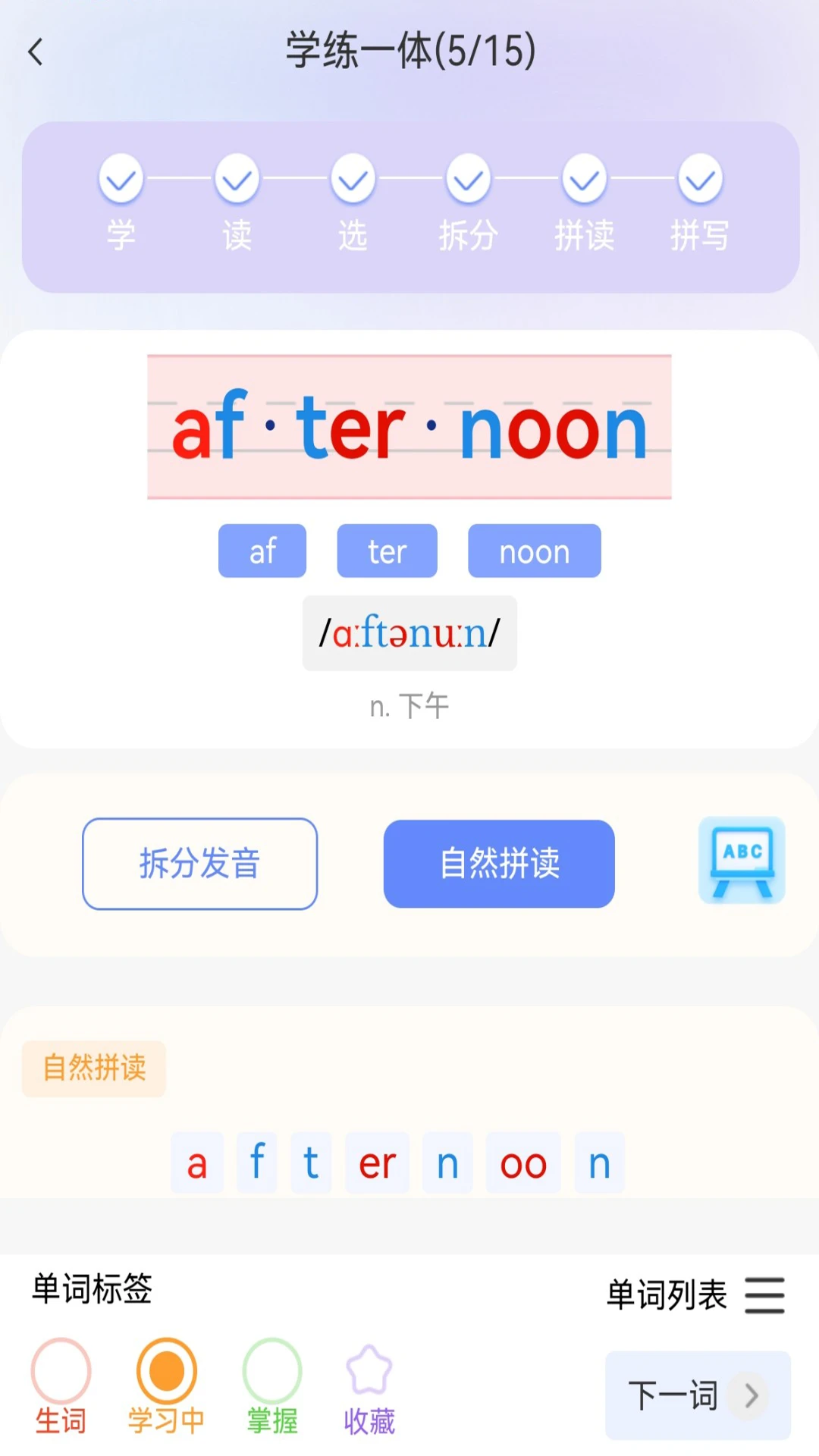 自然拼读拆分:通过分析单词的发音规律,帮助用户理解拼写与发音的对应关系,轻松记忆单词。