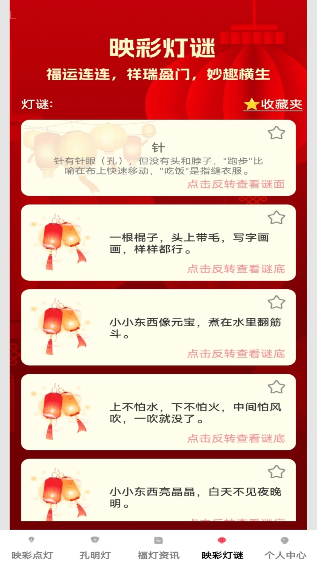 灯谜挑战:包含千道分级谜题,支持单人闯关和好友对战模式。