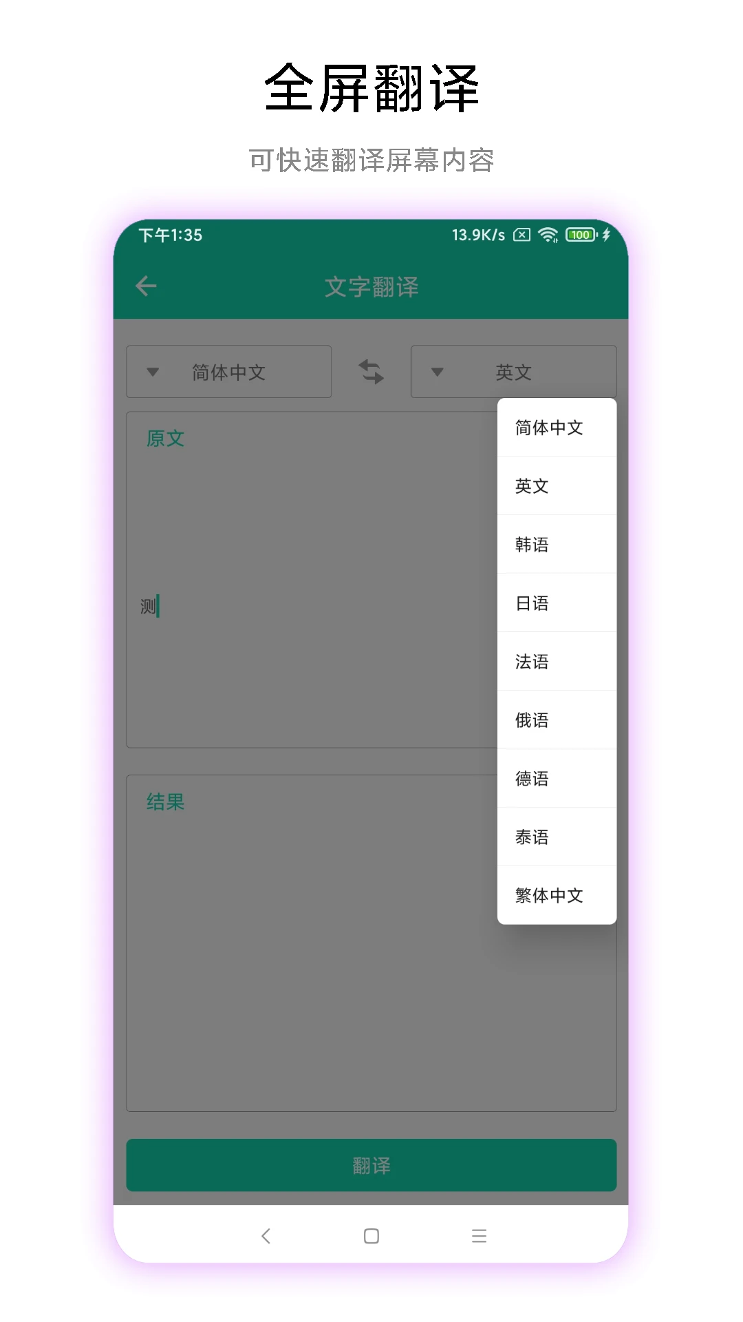 翻译屏幕文字:直接翻译屏幕上显示的外语内容,支持多语言互译。
