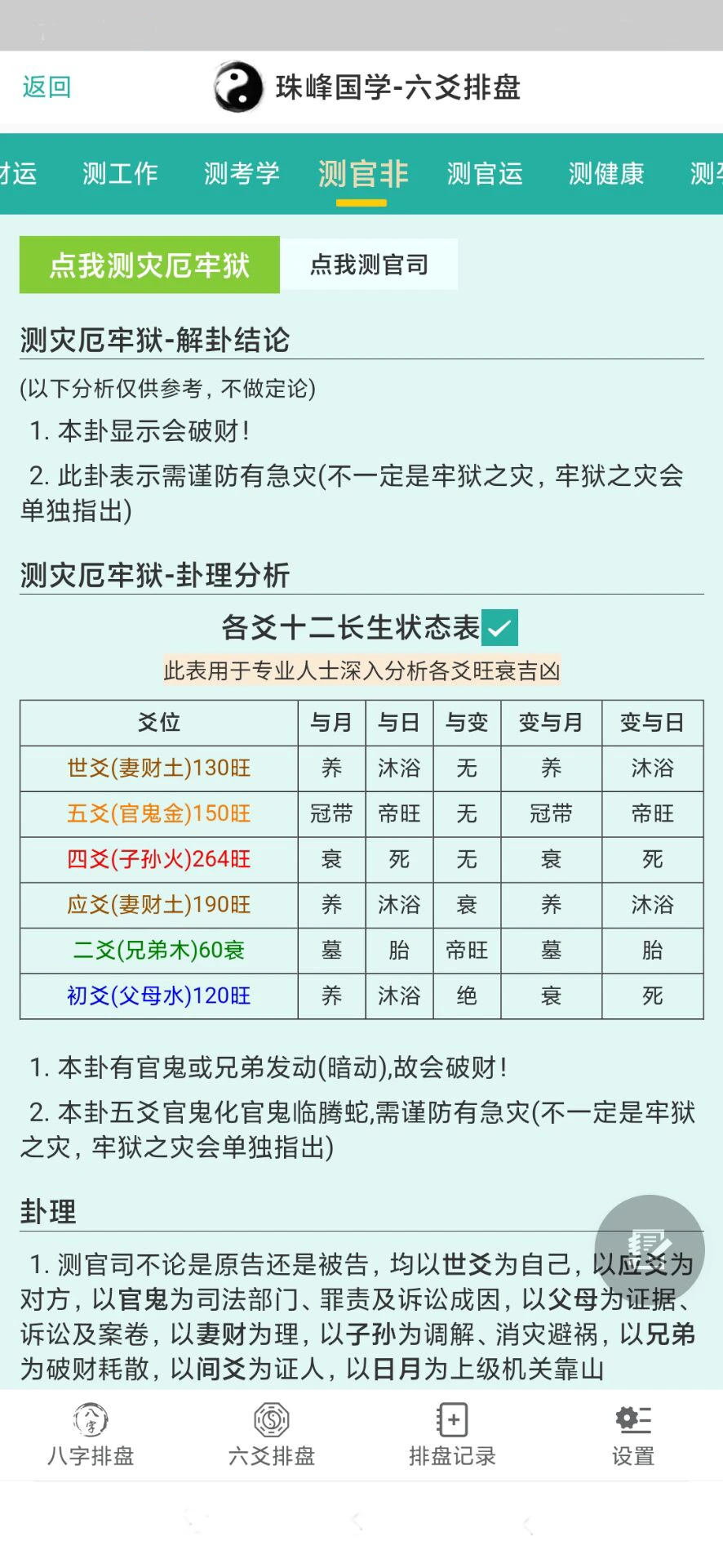 每一结论均附带卦理解析,帮助用户深入理解卦象含义。