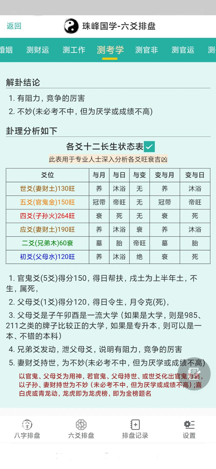 珠峰国学八字六爻软件不仅仅是一款优秀、强大的排盘工具,而且还自动给出了六爻卦和八字的结论、一生运势、祸福吉凶,都以通俗的语言断出了结论;更重要的是每一件事的结论,还都配上了详尽的卦理,使您不但能知然,还能知其所以然。此款软件,是易学爱好者的福音,在知道断卦结论的同时,还学习了卦理,使自己亲自己起的每一个卦,都成了生动而贴切的实战案例。自动给出准确的断卦结论(准确预测),并且配上详细的卦理,是珠峰国学软件的核心竞争力!精准预测是我们追求的目标!