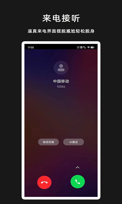 逼真来电模拟:采用高仿真来电界面设计,包含运营商标志、信号强度等细节,让虚拟来电与真实来电几乎无法区分