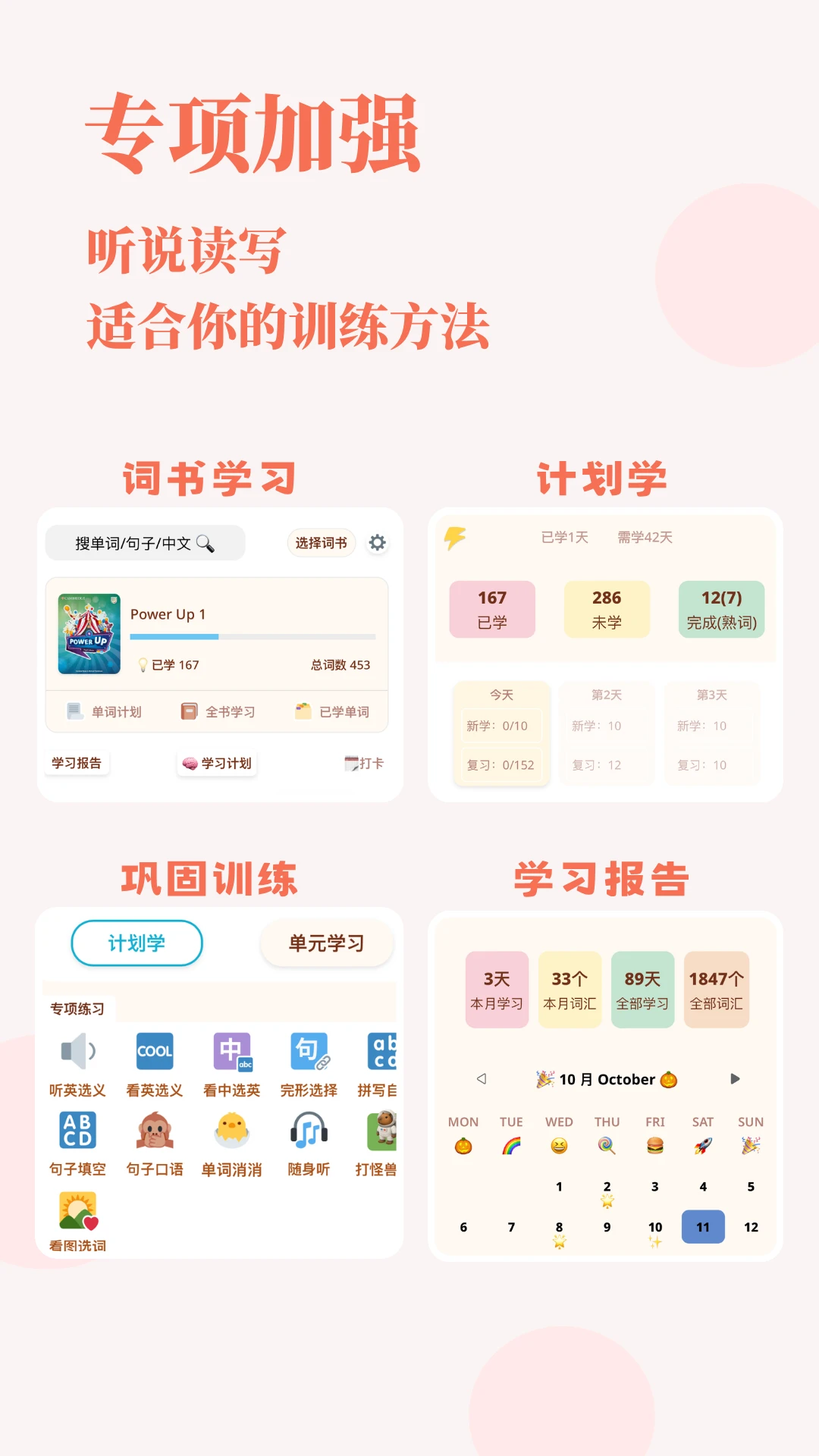 教材同步更新:覆盖中小学至大学四六级等主流英语教材词汇。