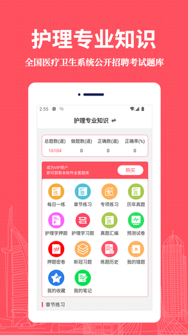 使用护理专业知识易题库非常简单。首先,用户需要在本网站下载并安装软件。安装完成后,用户可以在章节练习中选择特定章节的题目进行在线练习。历年真题板块收录了丰富的考试真题,用户可以通过刷题熟悉考试难度和题型。预测试卷功能允许用户模拟真实考试,检验学习成果。护理学押题板块则覆盖了考试的重点、难点和考点,帮助用户有针对性地进行复习,提高考试通过率。