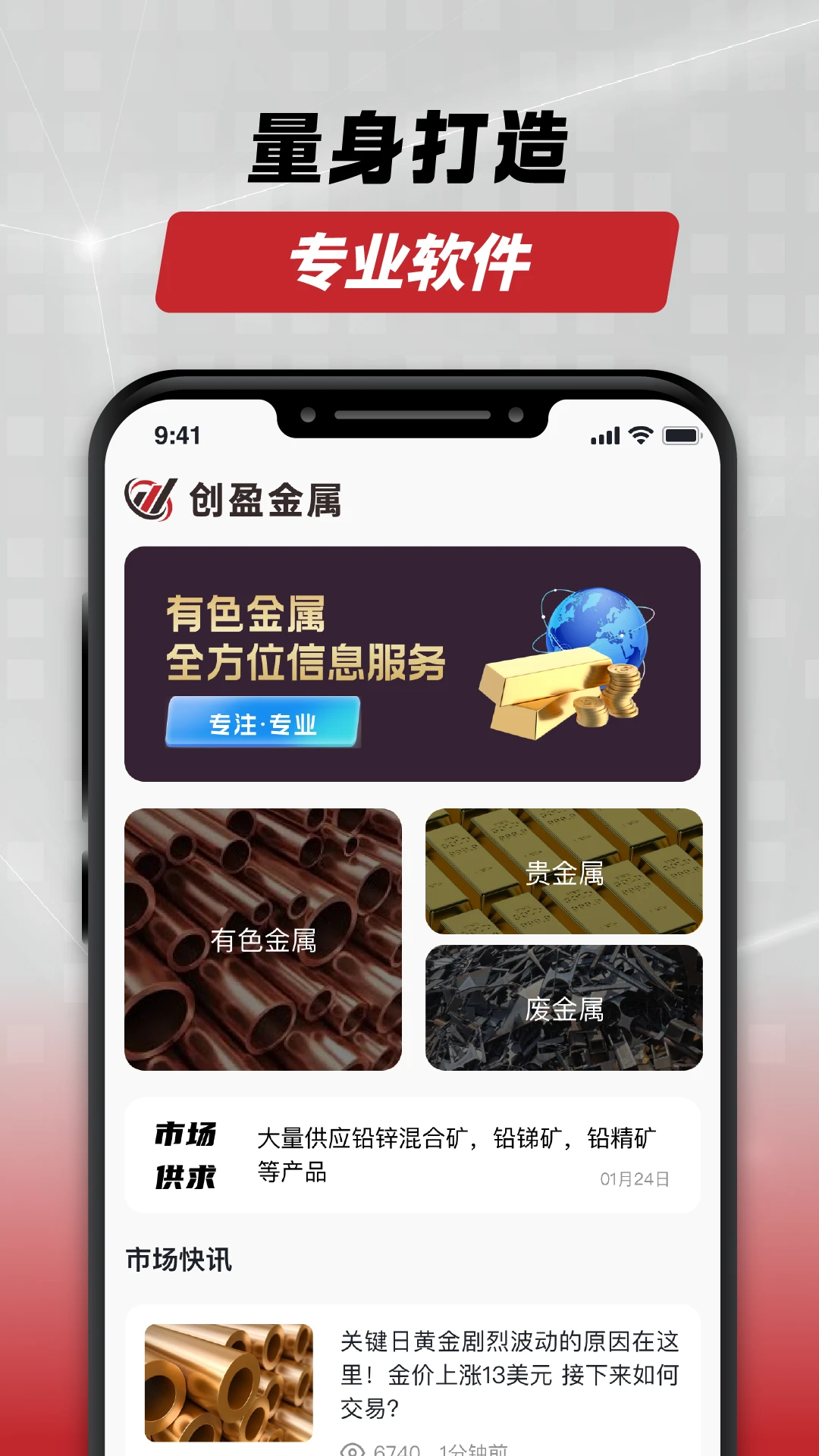 创盈金属是一款专门为关注金属行业的用户量身打造的移动端APP,旨在为广大用户提供金属行业的知识、供应情况等各方面的信息。通过专业、深度、全面的服务,致力于以内容为基础,为行业用户打造高质量的应用。欢迎使用并反馈建议。
