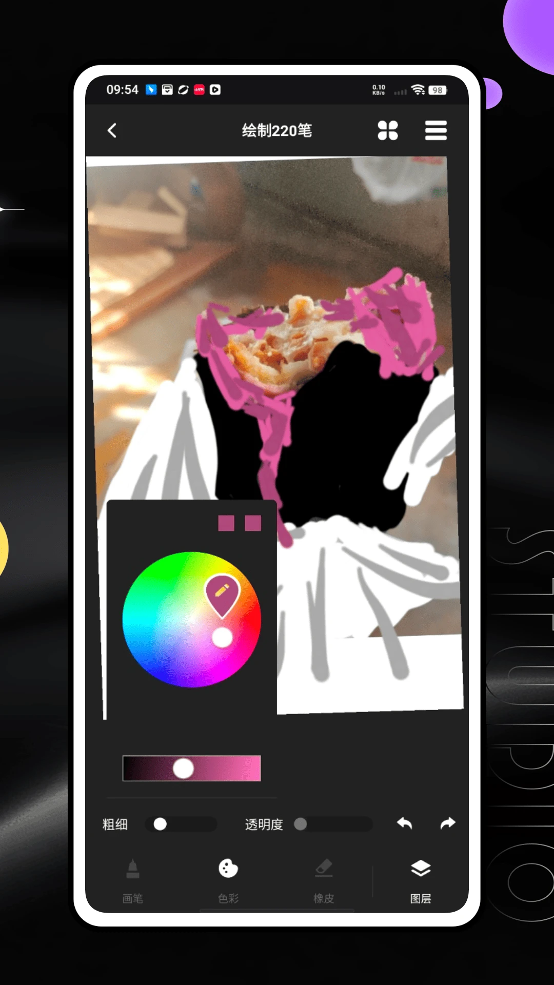 内置强大画板编辑功能,支持多种画笔、橡皮擦和颜色调整工具。