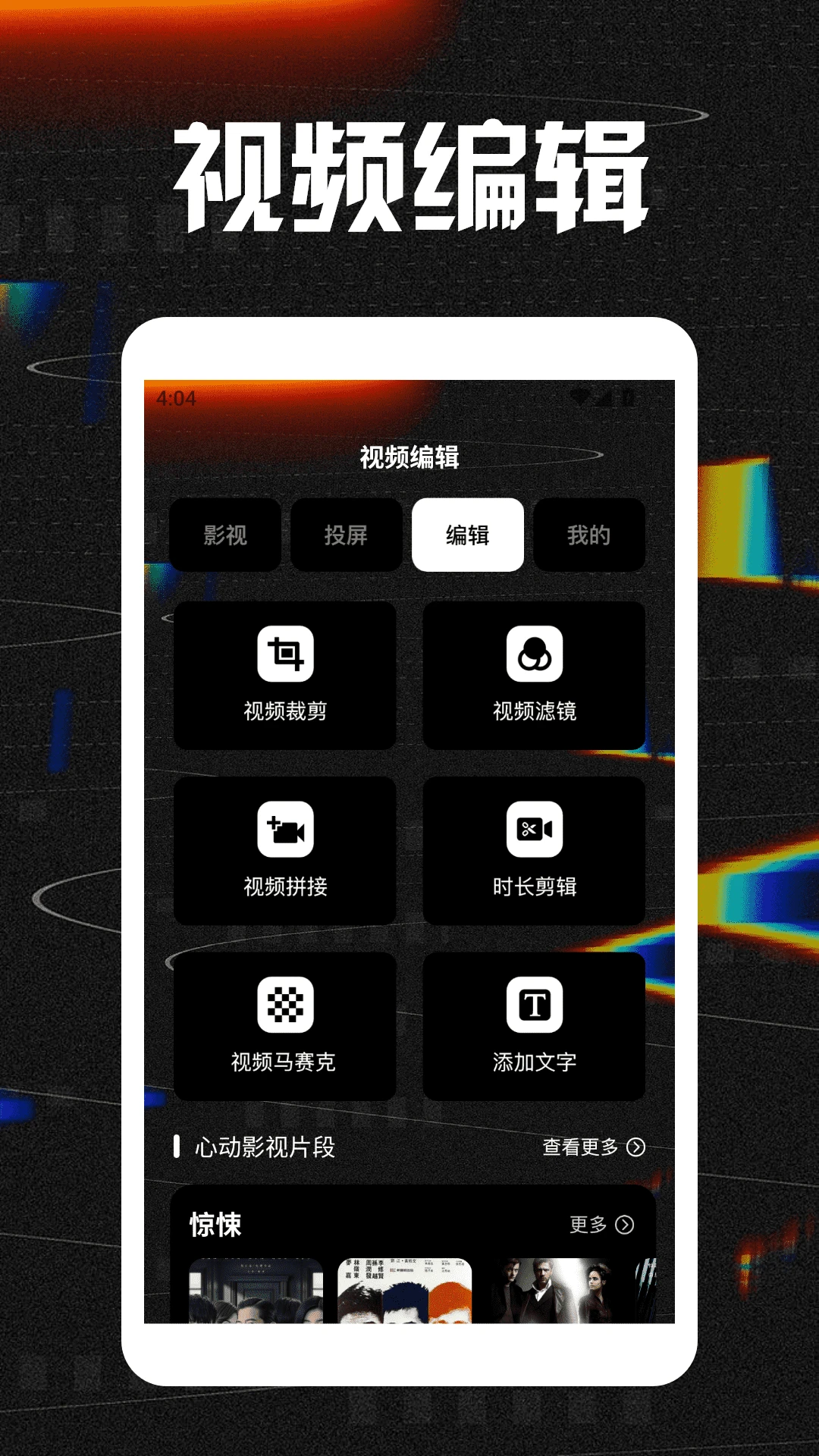 拾光影视播放器汇聚精彩影视剧解读,带你畅游精彩电影世界无需任何转换,不需要任何插件,不需要安装flash。自动扫描本地视频,快速寻找视频文件。包含各种视频编辑功能:视频裁剪,视频滤镜,视频拼接等,还可享受大屏播放,赶紧来试试吧!