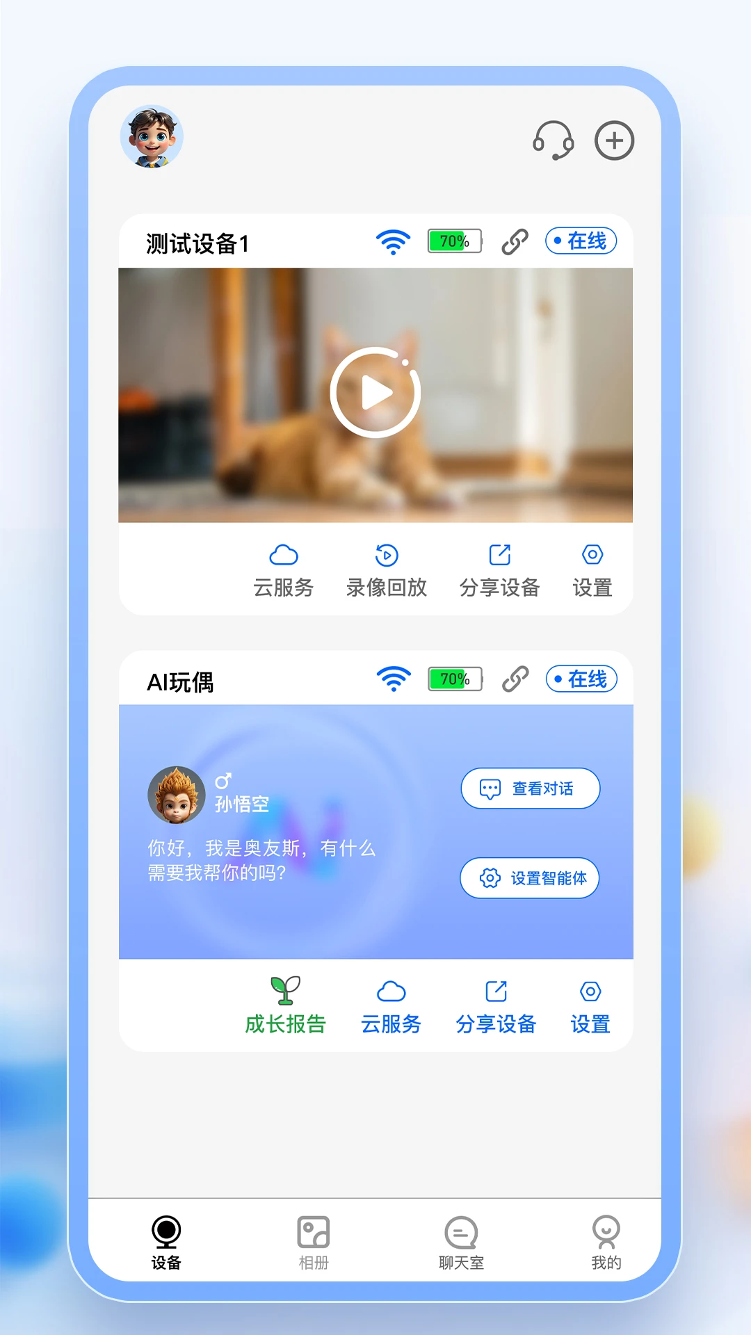 ai智能生活,体验ai时代。AI机器人对话可以作为用户的娱乐伙伴,与设备进行有趣的对话和互动。记录成就宣章、成长报告、故事大师