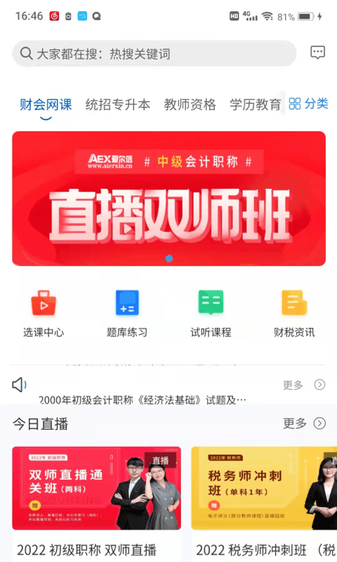 海量题库资源:涵盖各类考试真题及模拟题,题目数量庞大、覆盖面广,支持学练结合的学习模式,巩固知识点。