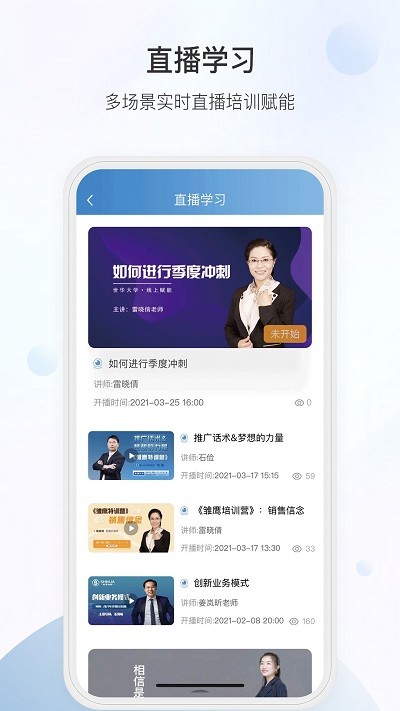 用户可以通过观看各种直播来学习知识内容,为用户提供直播学习版块。平台邀请行业专家定期开展专题直播,支持实时互动答疑,打造沉浸式学习体验。