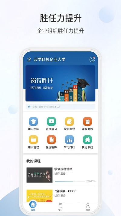 用户可以看到各种公告内容,应用中有公告版块,快速了解最新的学习任务。系统支持智能推送功能,确保重要通知和学习安排第一时间触达相关人员,提升组织沟通效率。