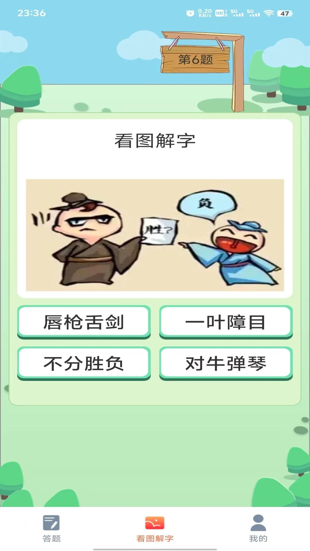 看图解字功能:结合图像与文字,提供独特的解谜体验,激发用户的联想能力。