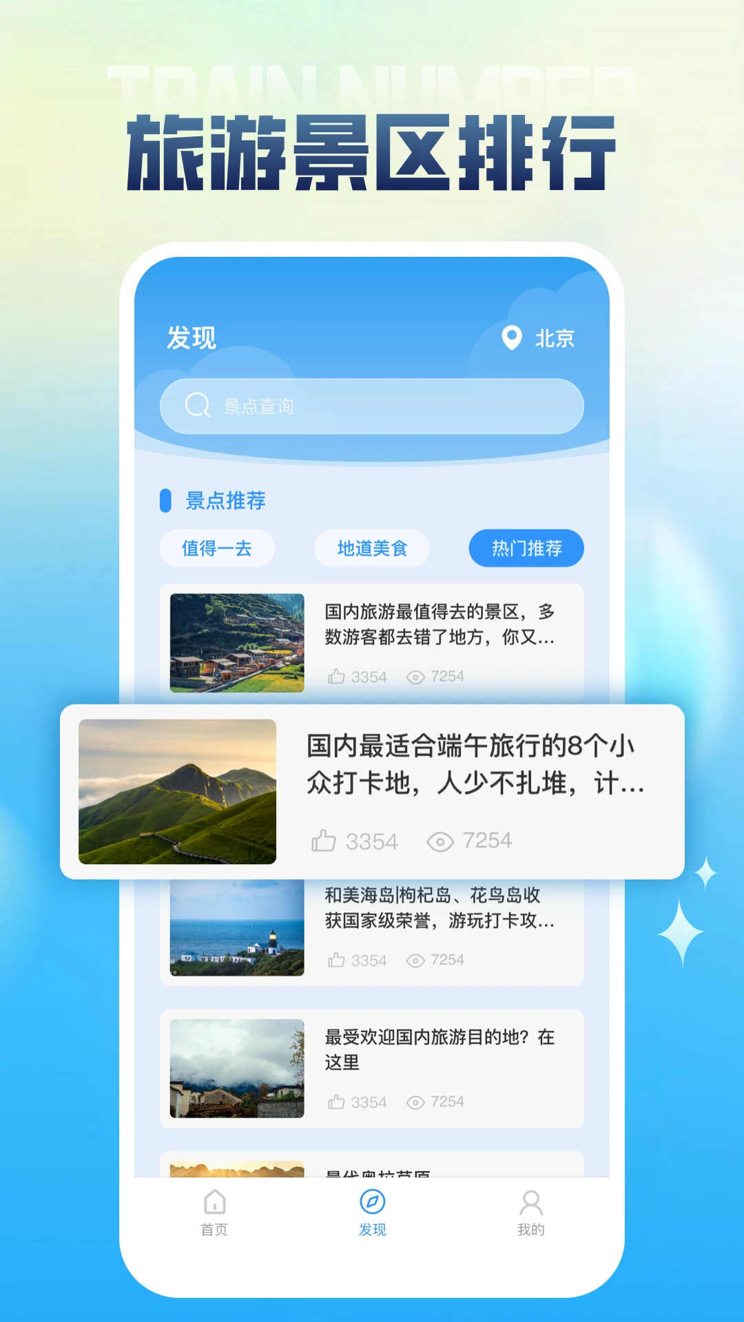 首页:高铁出行的指南针打开app的首页,你会被其简洁而实用的设计所吸引。这里呈现的高铁列车车次信息清晰明了,如同一张展开在你眼前的详细列车运行图。每一趟高铁车次的关键信息都一目了然,无论是出发站、到达站、出发时间、到达时间还是途经站点,都能精准获取。对于经常乘坐高铁出行的商务人士而言,能够快速规划行程,确保准时赶赴会议或商务活动。而对于旅游爱好者来说,轻松查询车次可以无缝对接旅程,减少换乘等待时间,让旅行更加顺畅。景点页:精彩之旅的宝藏之页景点页则像是一本丰富多彩的旅游宝典。值得一去优选精心筛选出的各个景点,都有着独特的魅力。无论是大自然赋予的壮美景观,如雄伟的高山、辽阔的大海,还是承载着历史记忆的古老遗迹、人文胜地,都能在这里找到。详细的介绍会让你了解每个景点背后的故事和独特之处,帮助你决定哪些地方值得纳入你的旅行计划。美食优选美食优选板块是味蕾的狂欢地。这里汇聚了各地的特色美食,从鲜香麻辣的地方小吃到精致典雅的传统名菜,每一道美食都有诱人的描述和优选理由。无论你走到哪里,都可以通过它发现当地地道的美味,让舌尖上的旅行成为难忘的回忆。旅游胜地优选在旅游胜地部分,涵盖了国内外众多热门旅游目的地。攻略包括当地的合适游玩季节、必去景点、特色活动等,为你提供一站式的旅行规划指导,轻松开启精彩的旅游之旅。总之,【列车时刻表】app是你出行和旅游的得力助手,让每一次旅程都轻松又精彩。