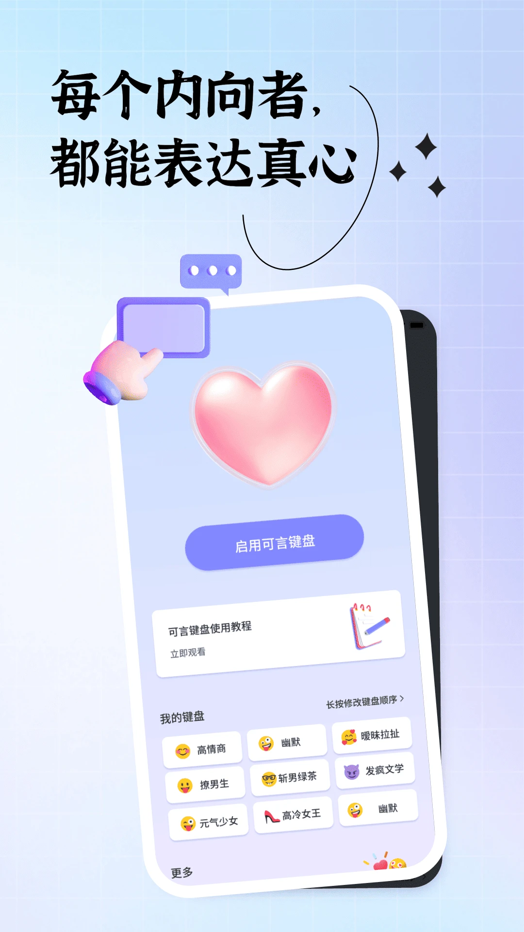 “可言”是一款专为提升沟通效率而设计的智能聊天辅助软件,旨在帮助用户在社交、恋爱、职场等场景中轻松应对各种对话需求。无论是缺乏表达灵感,还是希望提升回复质量,它都能通过智能模板和个性化设定,让每句话更得体、更富魅力。其核心功能包括一键生成高情商回复、加密私密对话等,让沟通变得简单而有趣,成为用户日常社交的得力助手。