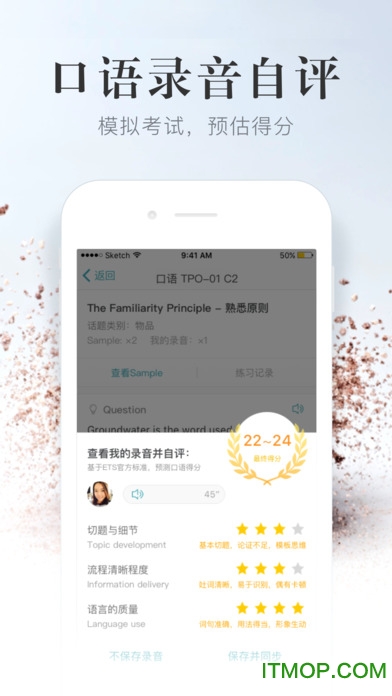 托福考满分苹果版是一款专为托福考生打造的智能学习应用,集备考资料、模拟练习和个性化学习方案于一体。该应用拥有海量真题资源,包括TPO、老托福PartC和美国科学人(SSS)等权威材料,并持续更新扩充内容。通过先进的AI技术,它能精准分析用户薄弱环节,提供针对性训练。无论是听力精听、阅读技巧还是口语写作,都能找到专业指导。创新的学习模式让备考更高效,随时随地利用碎片时间提升英语能力,是托福考生不可或缺的学习助手。