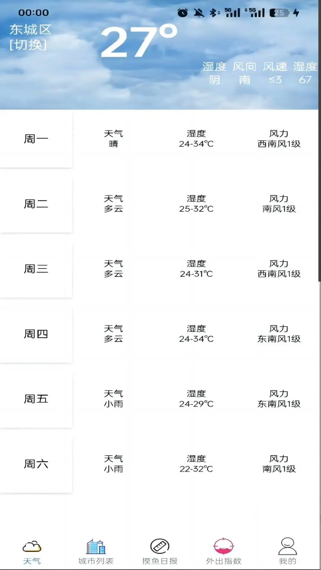 每日天气:提供当天详细的天气信息,包括温度、湿度、风力等数据,帮助用户快速了解天气状况。