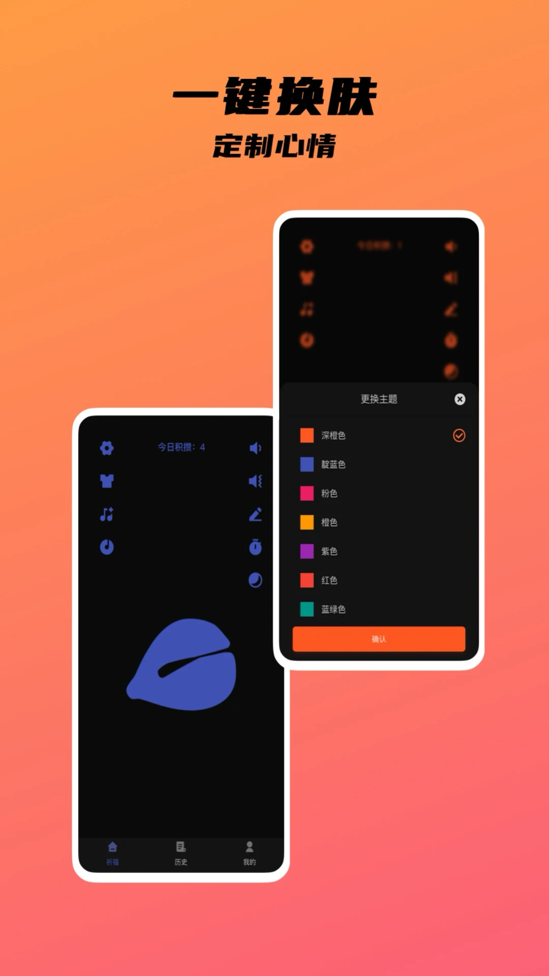 一款模拟木鱼点击的解压App,通过模拟真实木鱼敲击的效果,让心情放松,App洁面清爽简约,一键换肤,提供十几种内置的颜色,自定义页面,音色更换,让烦恼远离,快速摆脱城市的喧嚣